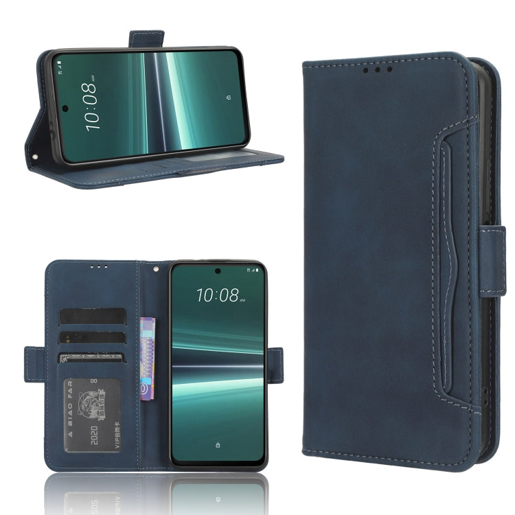 Funda de Cuero para HTC Desire 22 Pro con Ranuras para Tarjetas y Textura Skin Feel Calf (Azul)