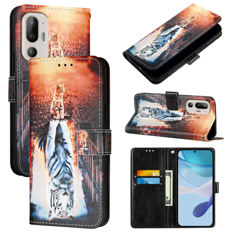 Funda de Cuero para HTC U24 Pro con Diseño de Gatos y Tigres (Colores Lisos)