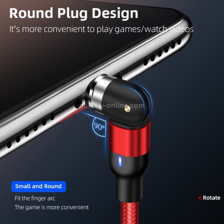 Cable 3 en 1 USB A 8 Pines + USB-C + Micro USB Magnético Giratorio Trenzado de Nailon (Rojo) 2M 2A