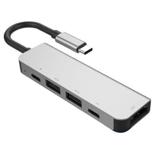 - 1x Adaptador Hub 5 en 1 USB-C Type-C con HDMI, 2 Puertos USB y 2 Puertos PD