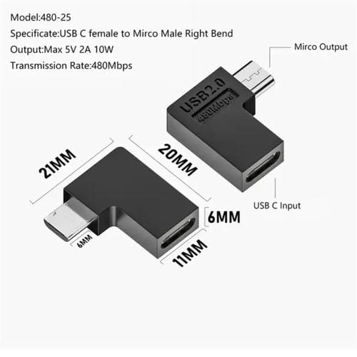 Adaptador Tipo C Hembra a Micro USB Macho con Curvatura Derecha para Transmisión de Carga y Datos