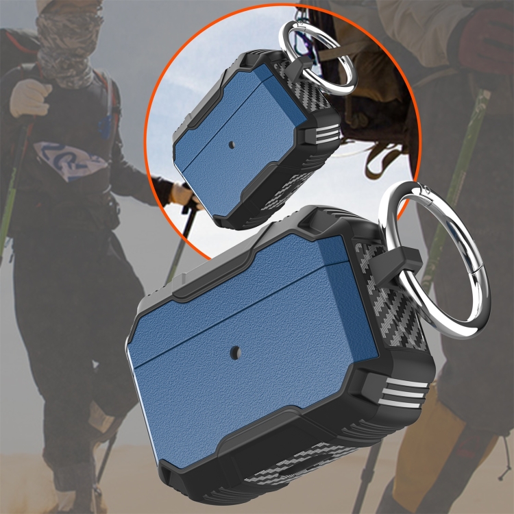 Auricular inalámbrico funda TPU + PC a prueba de golpes con gancho para AirPods Pro (Rosa Azul Marino)