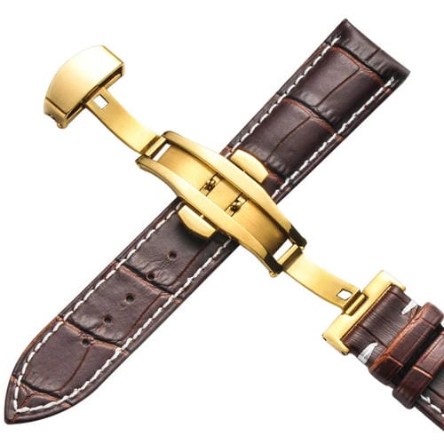Banda de Reloj de Cuero 22mm Hebilla de Mariposa con Líneas Blancas (Marrón)