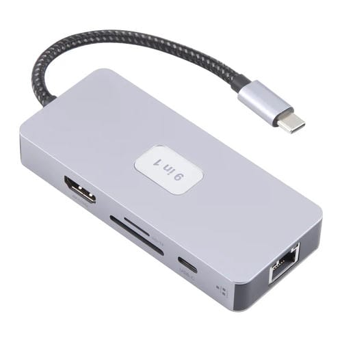 • 1x Estación de Acoplamiento Byl-2318 9 en 1 USB-C a USB 3.0, Type-C, 1000M Ethernet, HDTV, SD/TF Dual (Gris)