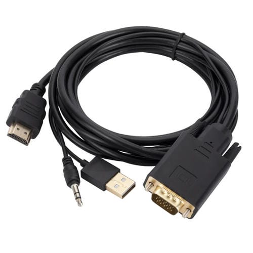 • 1x Cable Adaptador VGA a HDMI con Fuente de Alimentación y Banda de Audio 1,8 m (Negro)