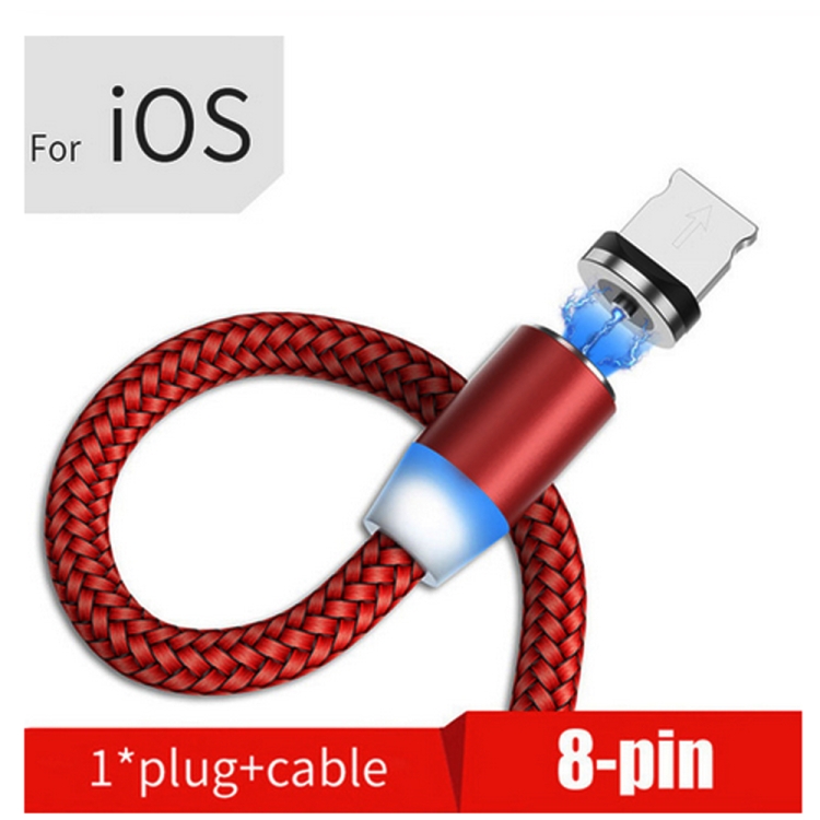Cable de datos magnético trenzado bicolor Nailon USB a 8 Pines (Rojo) 1 m
