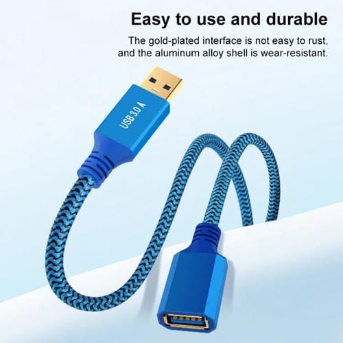 El Cable de extensión USB 3.0 Macho a Hembra de 3 metros en color Azul está diseñado para ampliar la conectividad de dispositivos con interfaz USB 3.0, facilitando la Conexión entre Computadoras, impresoras, Discos duros externos y otros periféricos compatibles. Este Cable permite extender la Señal USB desde el Puerto Original hasta una ubicación más accesible, optimizando el espacio de trabajo y mejorando la comodidad en entornos de oficina o domésticos. Su construcción incorpora materiales resistentes y tecnologías que garantizan una transferencia de datos segura y eficiente, manteniendo la integridad de la Señal incluso en distancias prolongadas.