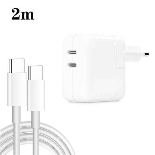 Cargador Dual USB-C 35 W PD3.0 con Cable Tipo C a Tipo C 2 m (Blanco)