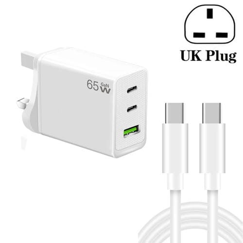 Cargador Gan Pd65W Tipo C x 2 + Usb 3.0 con Cable Tipo C a Tipo C (Blanco)