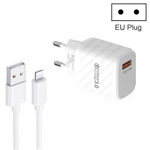 Cargador rápido USB TE-005 QC3.0 18 W con cable USB 3 a 8 pines 1 m (Blanco)