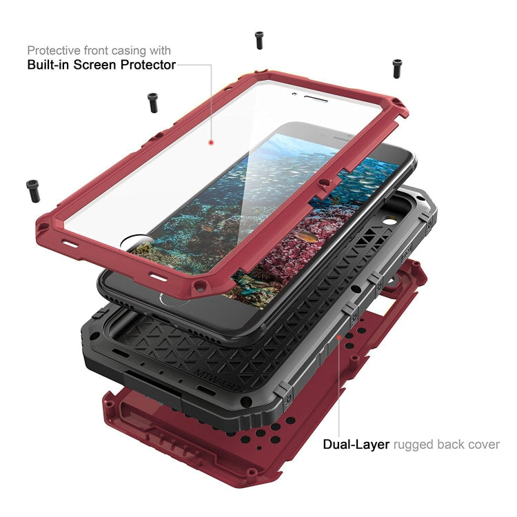 Case de Teléfono Metal Silicona con Protector Pantalla iPhone 8 Plus 7 Plus (Rojo)