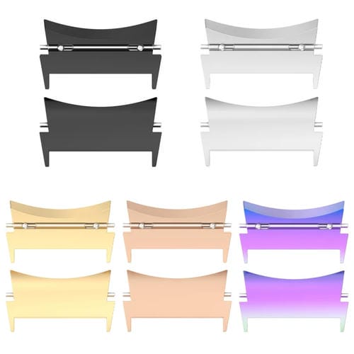 Conectores de Banda de Reloj de Metal de acero inoxidable diseñados específicamente para el Samsung Galaxy Watch 6/6 Classic. Este par de Conectores, en color Oro, no solo asegura la fijación perfecta de la Correa sino que también mejora la estética de su Reloj. Fabricados en un material resistente a la corrosión, estos Conectores son duraderos y fáciles de reemplazar, brindando una solución práctica para mantener su Reloj siempre en las mejores condiciones.