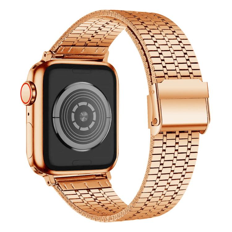 Correa de acero inoxidable con hebilla de siete cuentas para Apple Watch de 38, 40, 41 y S10 de 42 mm (oro rosa)