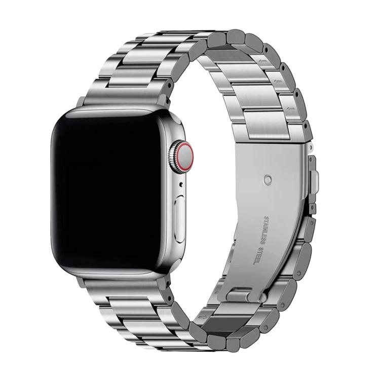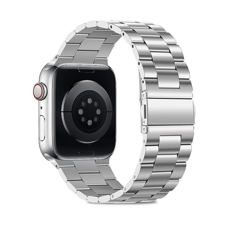 Correa de acero inoxidable con tres cuentas y película curva 3D para Apple Watch Series 10 de 42 mm (plateada)