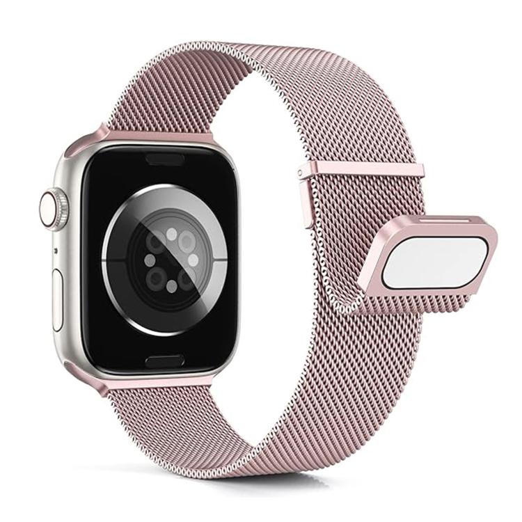 Correa de acero inoxidable Kalebol de doble eslabón milanés con doble imán para Apple Watch de 46 mm / 49 mm / 45 mm / 44 mm (rosa).