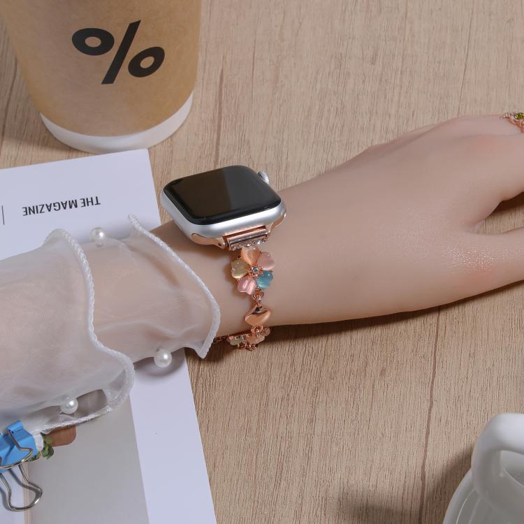 Correa de aleación con trébol de cuatro hojas para Apple Watch de 42 mm, 41 mm, 40 mm y 38 mm (oro rosa + trébol de cuatro hojas)