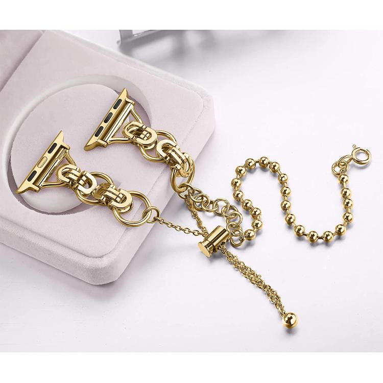 Correa de aleación de zinc con cadena de cuentas de doble círculo para Apple Watch de 46 mm, 49 mm, 45 mm y 44 mm (dorada)