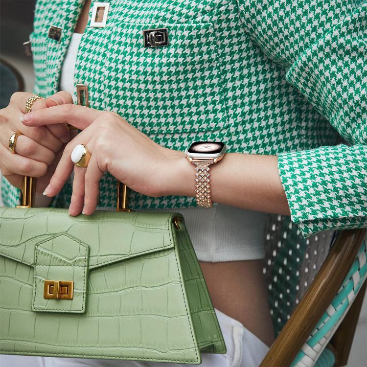 Correa de aleación de zinc con diamantes rómbicos para Apple Watch de 42 mm, 41 mm, 40 mm y 38 mm (oro rosa)