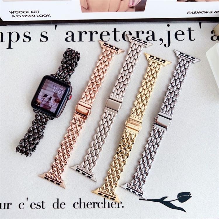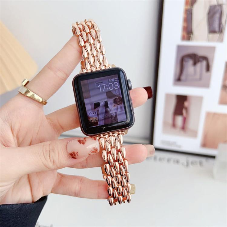 Correa de aleación de zinc con diseño de gota de agua para Apple Watch de 46 mm, 49 mm, 45 mm y 44 mm (oro rosa)