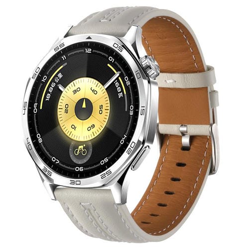 Correa de cuero con hebilla plateada para Huawei Watch GT 6 de 46 mm (beige)