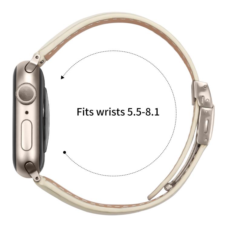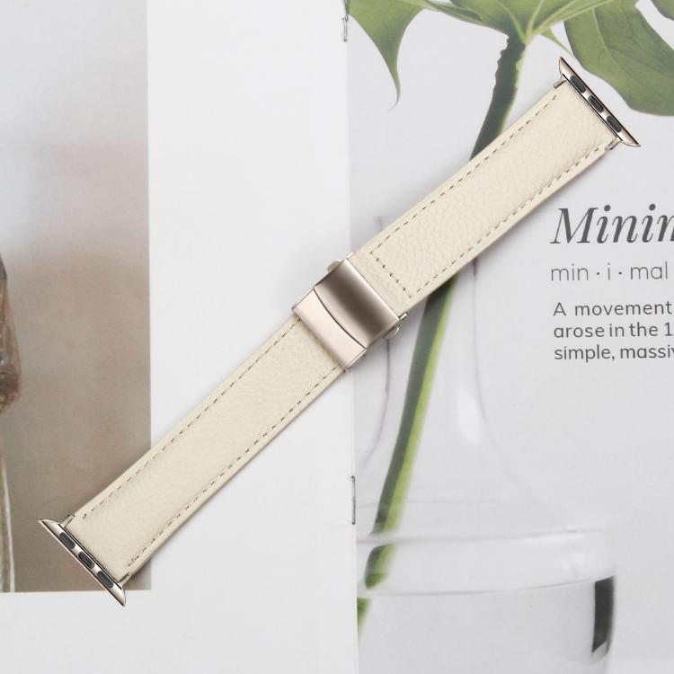 Correa de cuero con hebilla trasera de tortuga y textura de lichi para Apple Watch de 42 mm, 41 mm, 40 mm y 38 mm (blanco cremoso)