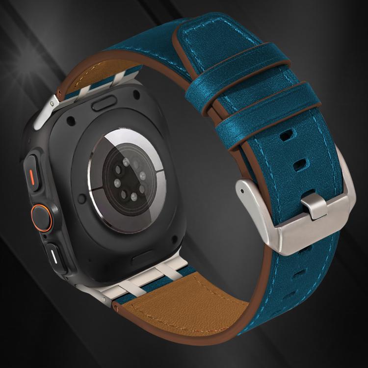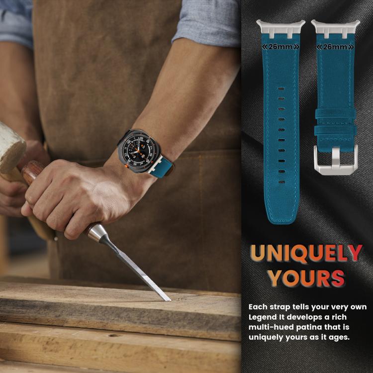 Correa de cuero Crazy Horse para Samsung Galaxy Watch Ultra de 47 mm (azul oscuro + hebilla de titanio)