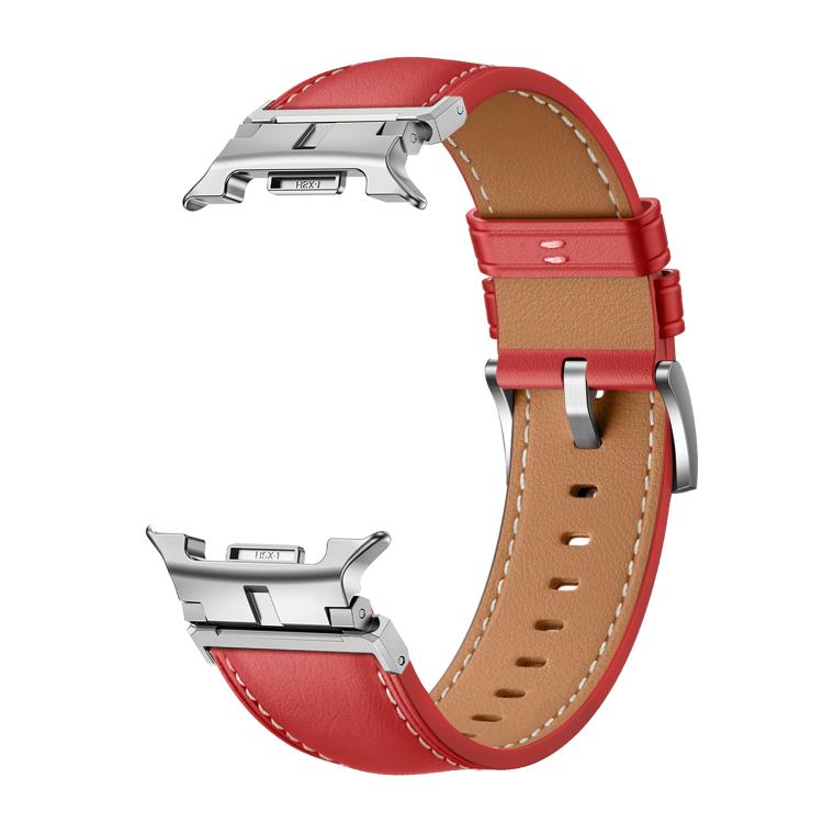 Correa de cuero genuino con conector de cabeza de metal clásico para Samsung Galaxy Watch8/Watch8 (rojo y plateado)