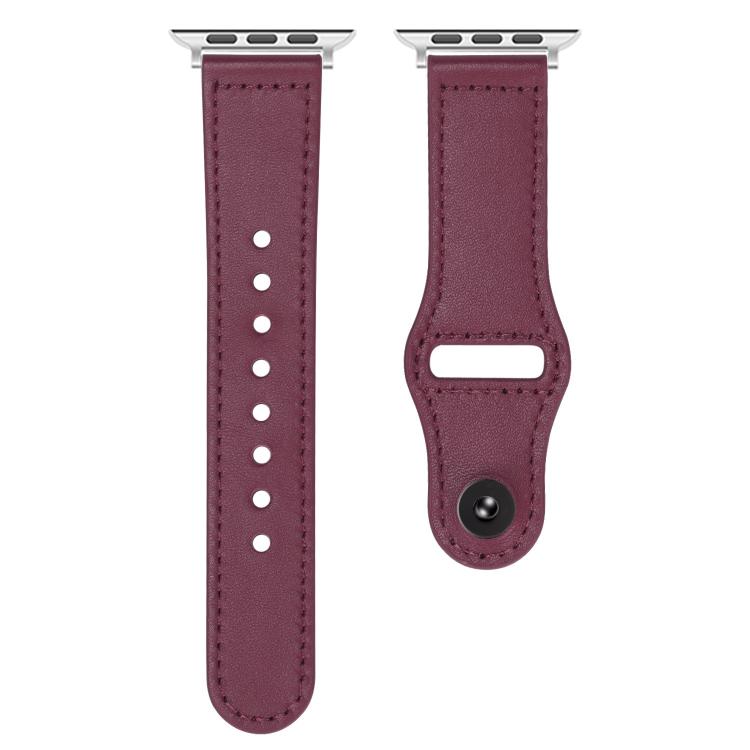 Correa de cuero genuino con hebilla inversa para Apple Watch de 46 mm, 49 mm, 45 mm y 44 mm (rojo vino)