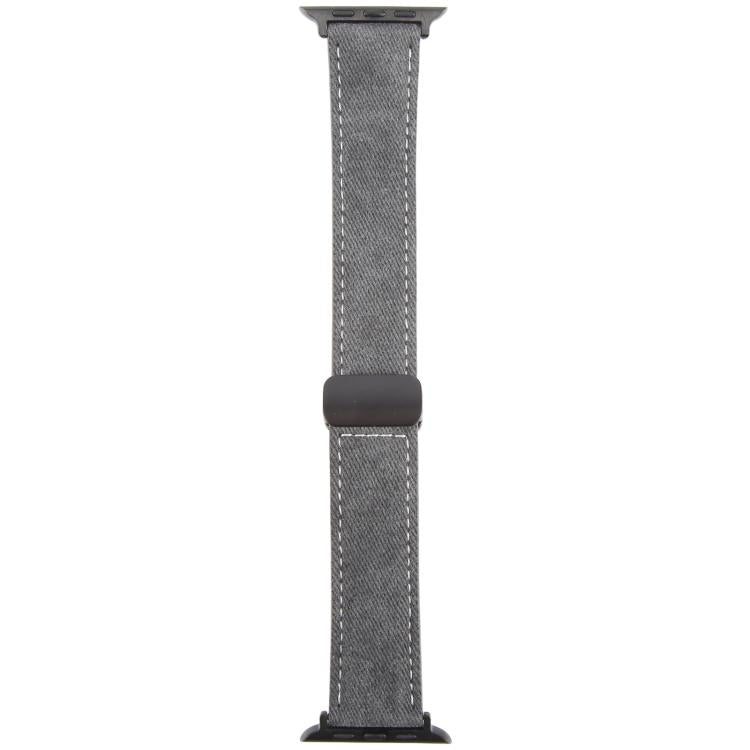 Correa de cuero vaquero con hebilla magnética plegable para Apple Watch de 46 mm, 49 mm, 45 mm y 44 mm (negra)