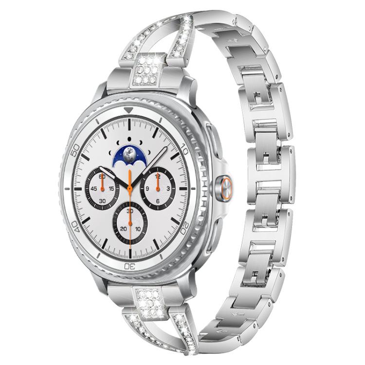 Correa de metal con diamantes de una sola fila en forma de X para Samsung Galaxy Watch8/8 Classic xDfind (plateada)