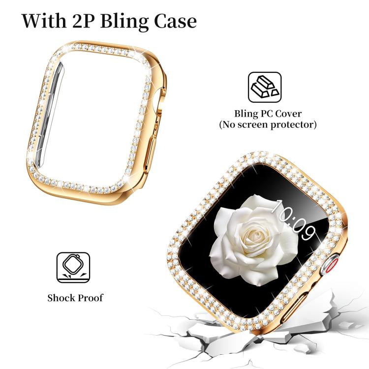 Correa de metal con diamantes y estuche para Apple Watch Series 10 de 42 mm xDfind (oro rosa)