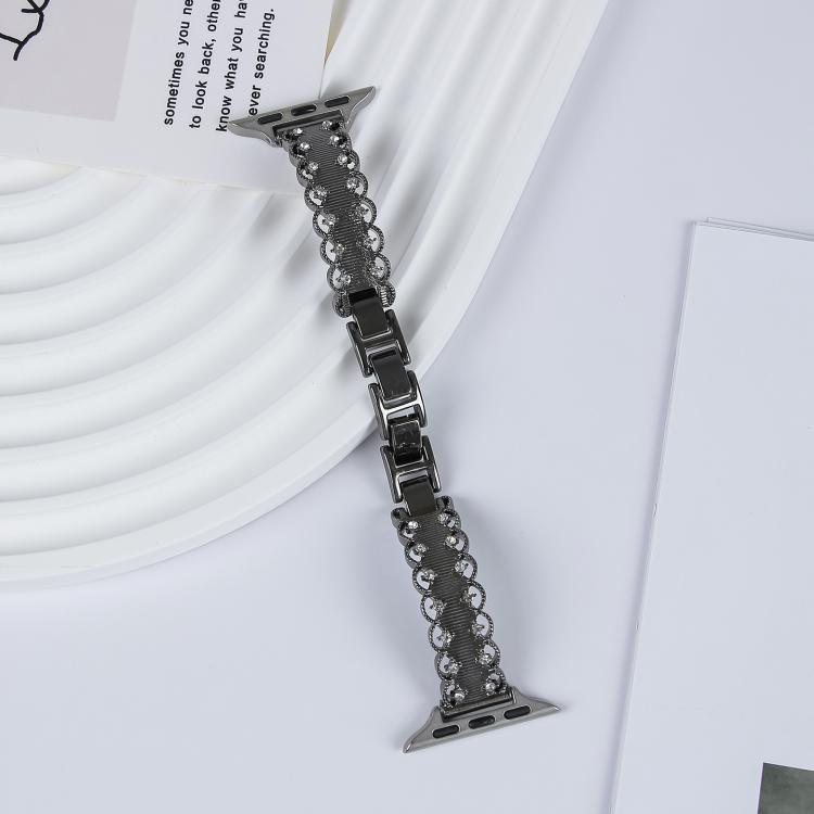 Correa de metal de aleación de diamante con bordes de encaje para Apple Watch de 46 mm, 49 mm, 45 mm y 44 mm (negra)