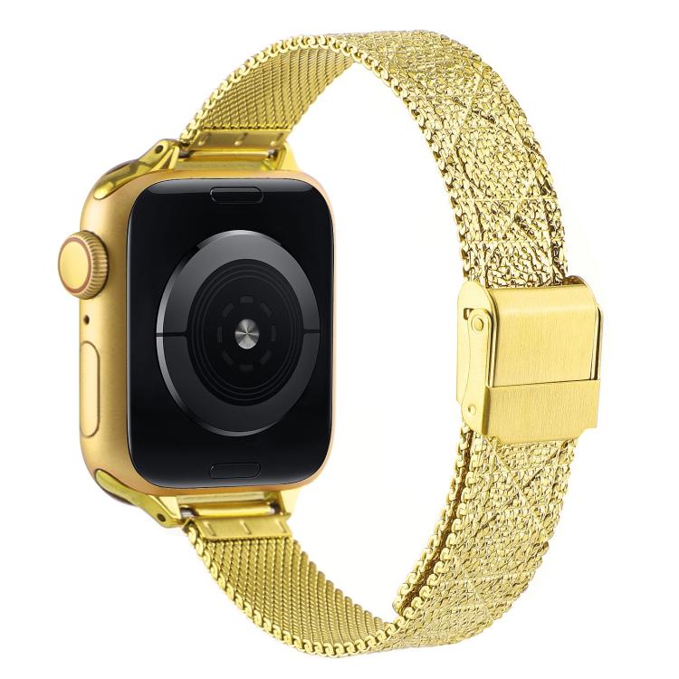 Correa de metal milanesa con relieve para Apple Watch de 42 mm, 41 mm, 40 mm y 38 mm (rombo dorado)