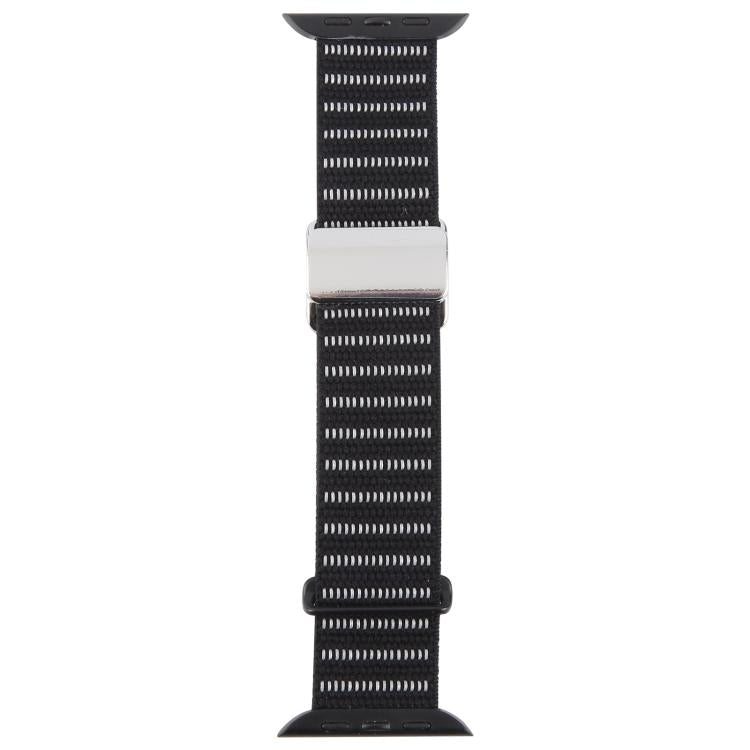 Correa de nailon reflectante con hebilla magnética para Apple Watch de 42 mm, 41 mm, 40 mm y 38 mm (negra)