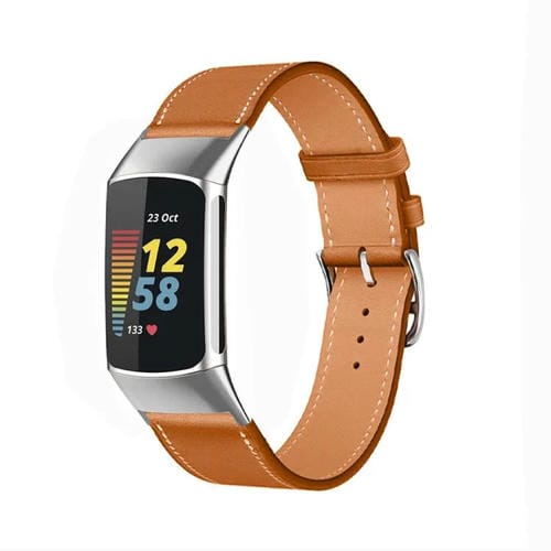 Correa de piel de vaca para Fitbit Charge 6/5 (marrón)