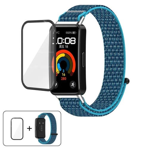 Correa de reloj con cierre de velcro de nailon y película curva 3D para Huawei Band 8/8 NFC (azul marino)