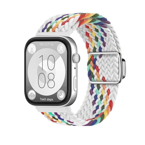 Correa de Reloj Nailon con Hebilla Magnética para Huawei Watch Fit3 (Arcoíris Blanco)