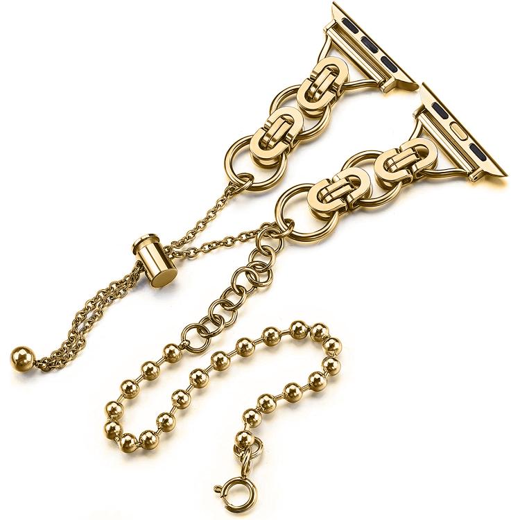 Correa de reloj de aleación de zinc con cadena de cuentas de doble círculo para Apple Watch de 42 mm, 41 mm, 40 mm y 38 mm (dorada)