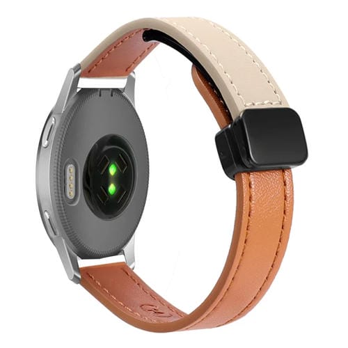 Correa de Reloj de Cuero Microfibra 18mm para Garmin Venu 2S (Naranja Aima + Albaricoque Crema)