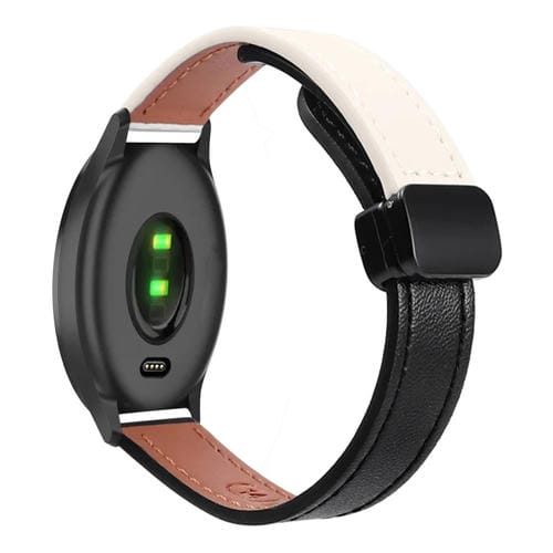 Correa de Reloj de Cuero Microfibra con Hebilla Magnética 20mm para Garmin Move Sport (Negro y Albaricoque)