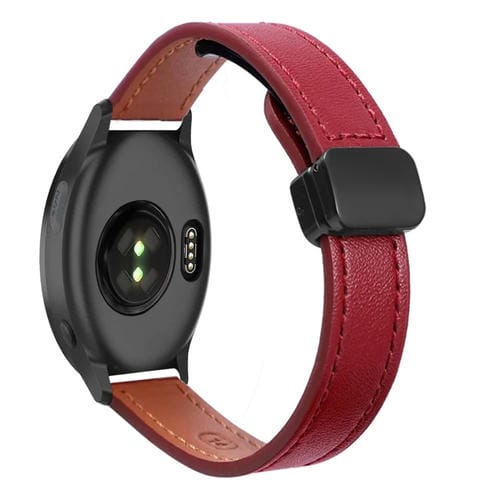 Correa de Reloj Cuero Microfibra 20mm con Hebilla Magnética para Garmin Forerunner 165 Music (Rojo Vino)