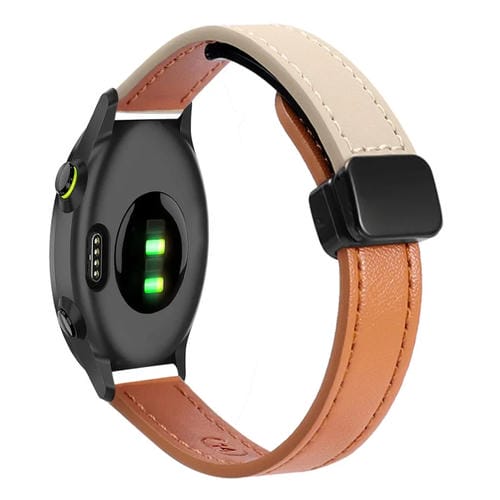 Correa de Reloj de Cuero Microfibra 20mm con Hebilla Magnética para Garmin Forerunner 55 (Naranja y Albaricoque)