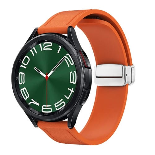 Correa de Reloj Cuero Silicona 20mm con Hebilla Magnética Plateada (Naranja)