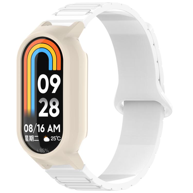 Correa de reloj de silicona magnética en forma de I para Xiaomi Smart Band 9/9 NFC PC Watch Frame (blanco + blanco)