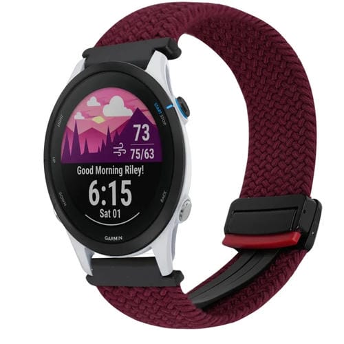 Correa de Reloj Trenzada Garmin Forerunner 255 22mm con Hebilla Magnética (Rojo Vino)