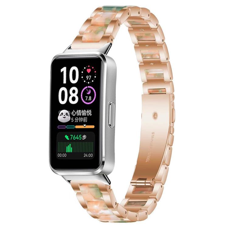 Correa de resina metálica de tres cuentas xDfind para Huawei Band 10/9/8 (oro rosa y verde)