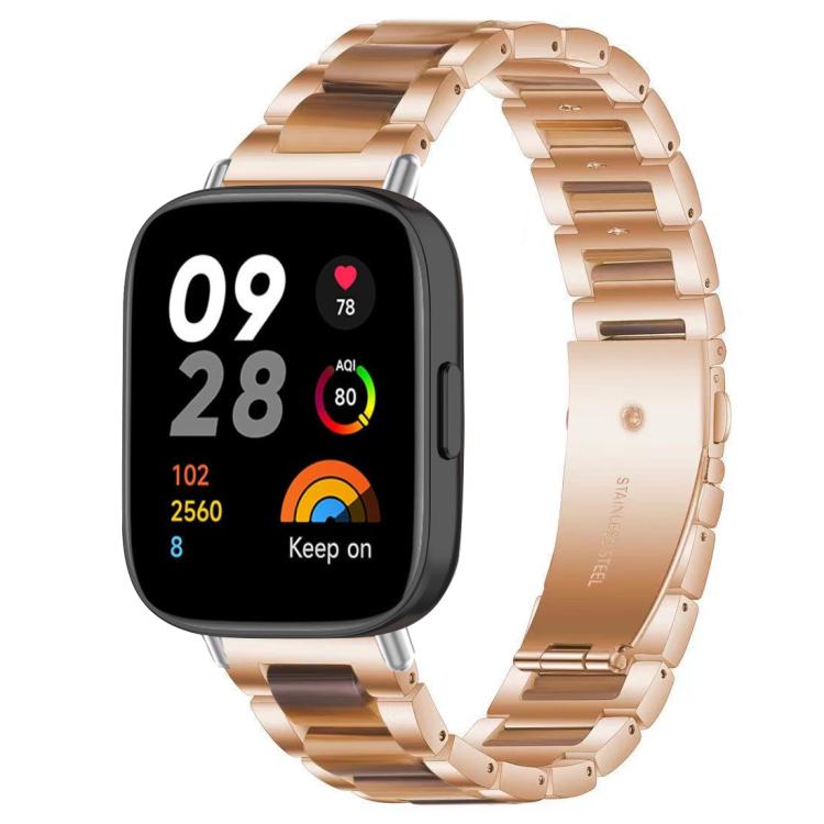 Correa de resina metálica de tres cuentas xDfind para Redmi Watch 3 (oro rosa y marrón)