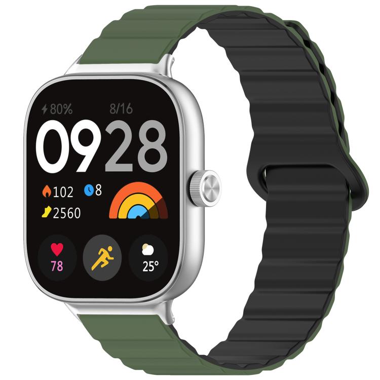 Correa de silicona brillante magnética xDfind Loop para Xiaomi Smart Band 9 Pro/8 Pro/Redmi Watch 5/4 (verde militar y negro)