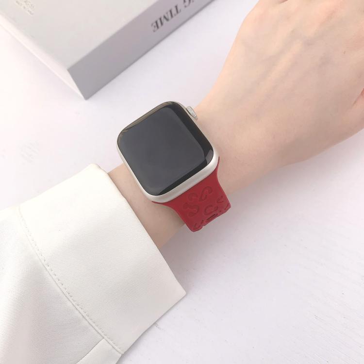 Correa de silicona con hebilla cóncava de leopardo para Apple Watch de 42 mm, 41 mm, 40 mm y 38 mm (rojo vino)
