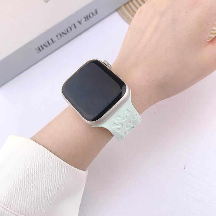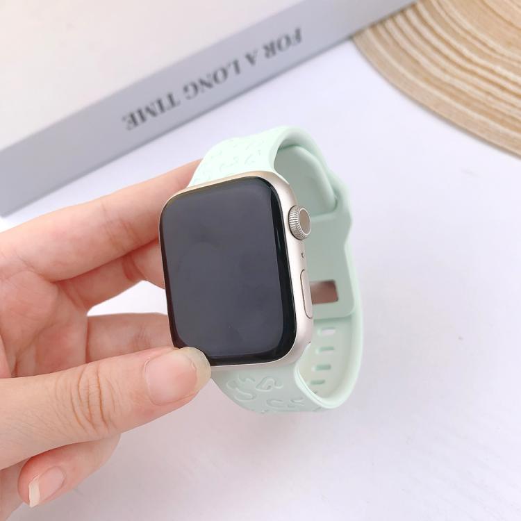 Correa de silicona con hebilla cóncava de leopardo para Apple Watch de 46 mm, 49 mm, 45 mm y 44 mm (menta claro)